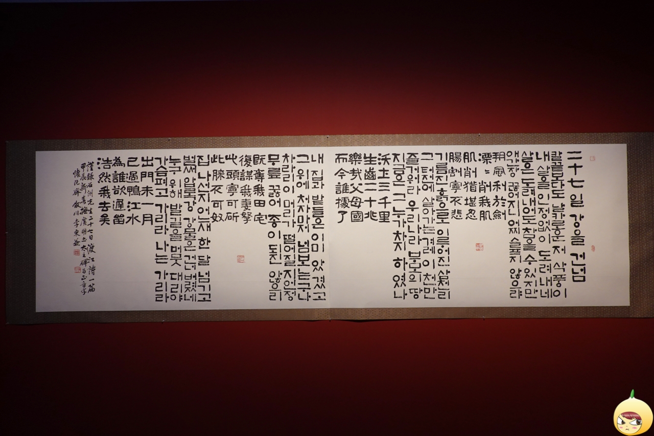 도강(이상룡 지음 / 이동익 씀) "27일 강을 건넘" 왜놈이 집과 논밭을 빼앗더니 이제 처자식마저 넘보는구나. 차라리 머리가 떨어질지언정, 무릎을 꿇고서 종이 되지는 않으니. 집 나선 지 어느새 한 달이 넘어, 벌써 압록강을 건너버렸네. 누굴 위해 발길을 머뭇거리랴? 가슴 펴고 가리라. 나는 가리라.