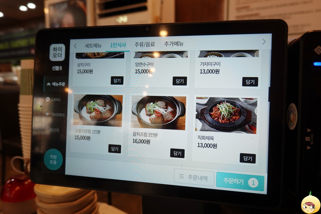 구이와 달리 조림은 2인부터 시작하는 곳이 많은데, 화덕구운고등어는 1인분이 가능하다. 갈치조림이 살짝 끌렸지만, 처음이라 대표 메뉴를 먹어야 하기에, 고등어구이(13,000원)를 주문했다. 참, 여기 키오스크는 주문에 결제까지 다 된다.