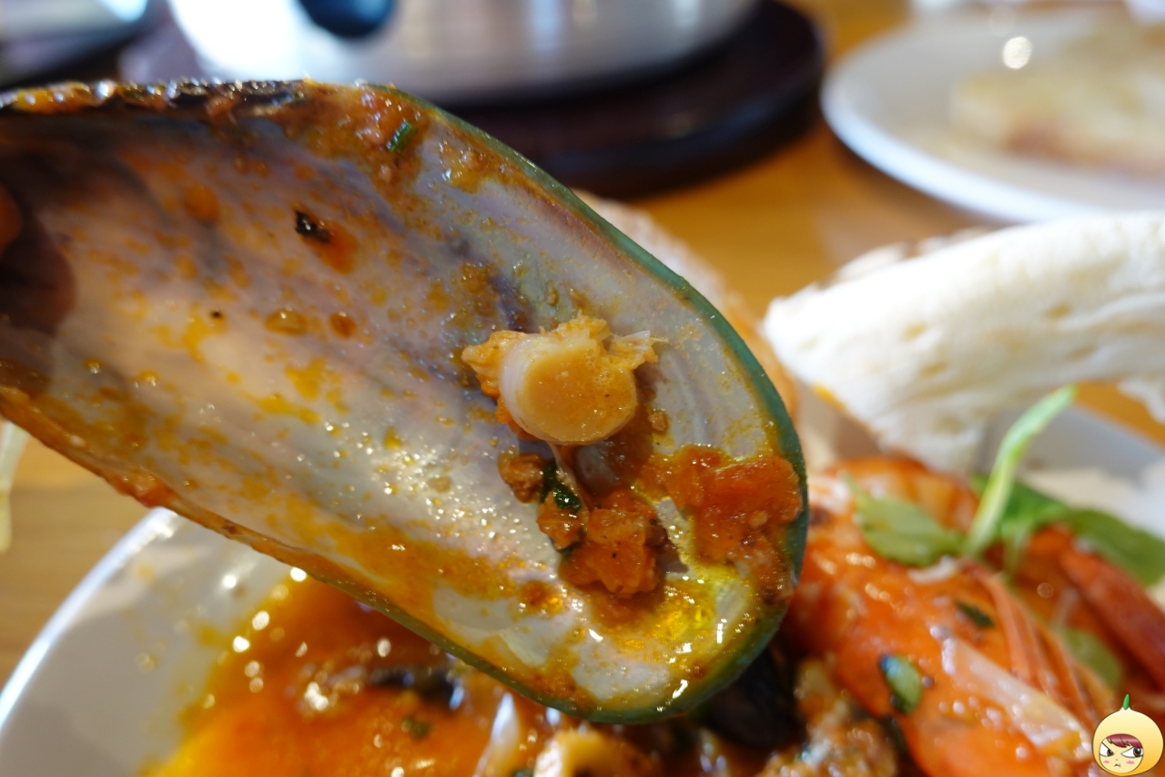 라구까수엘라(28,000원)는 라구소스에 홍합, 주꾸미, 새우, 가리비 등 신선한 해산물과 수란, 꼰낄리에 파스타면을 넣은 스튜이다. 우선, 수란이 아니라 리코타치즈인 줄 알고, 어떻게 먹어야 하는지 직원에게 물어봤다. 직원 왈, "수란을 터뜨려서 노른자를 잘 섞어서 드세요." 아하~ 치즈가 아니었구나.