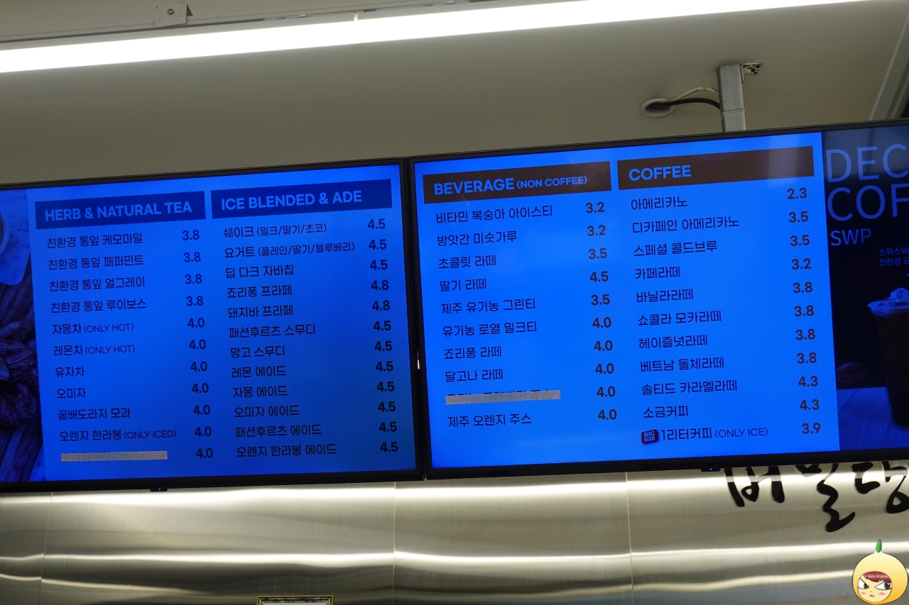 음려 종류는 다양하지만, 어딜 가나 주문은 동일하다. 차게 혹은 뜨겁게만 다를 뿐, "아메리카노(2,300원) 주세요." 살짝 외진 곳이라서 그런지 몰라도, 커피 가격이 매우 몹시 맘에 든다. 가격은 저렴하지만, 맛은 절대 저렴하지 않다.