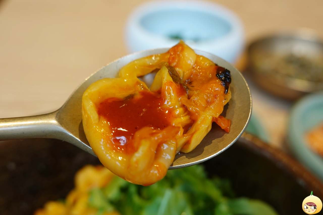 멍게비빔밥만큼 아니 때로는 그 이상으로 무지 매력적인 된장찌개가 같이 나온다. 국물만 보면 시판 된장은 아니고, 시골 된장으로 끓인 된장찌개 같다. 짠맛이 과하긴 하지만, 그만큼 감칠맛도 엄청나다. 여기에 냉이, 두부, 표고버섯, 애호박 등 내용물도 푸짐하게 들어있다. 공깃밥을 따로 주문해서 먹고 싶은데, 그전에 배가 불러서 늘 먹지 못한다.