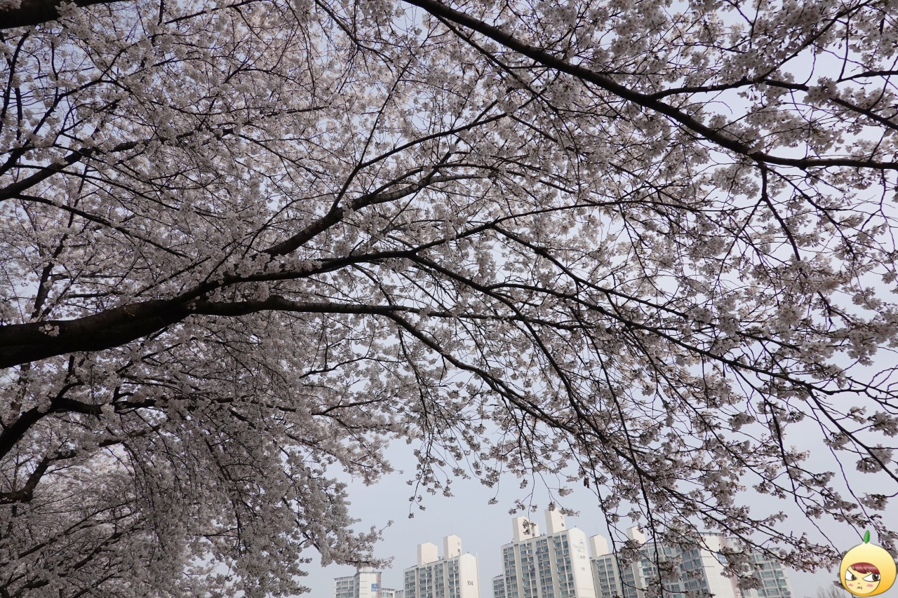 둑방길에 핀 벚꽃은 한쪽으로 쏠려있지만, 길이 끝남과 동시에 양쪽에 핀 즉, 벚꽃터널을 만날 수 있는 곳이 나온다. 늘 느즈막에 오는 바람에 꽃과 잎을 동시에 봤는데, 이번에는 아니다. 만개 한복판이라 엄청난 풍경이 예상될 거라, 의심치 않는다.